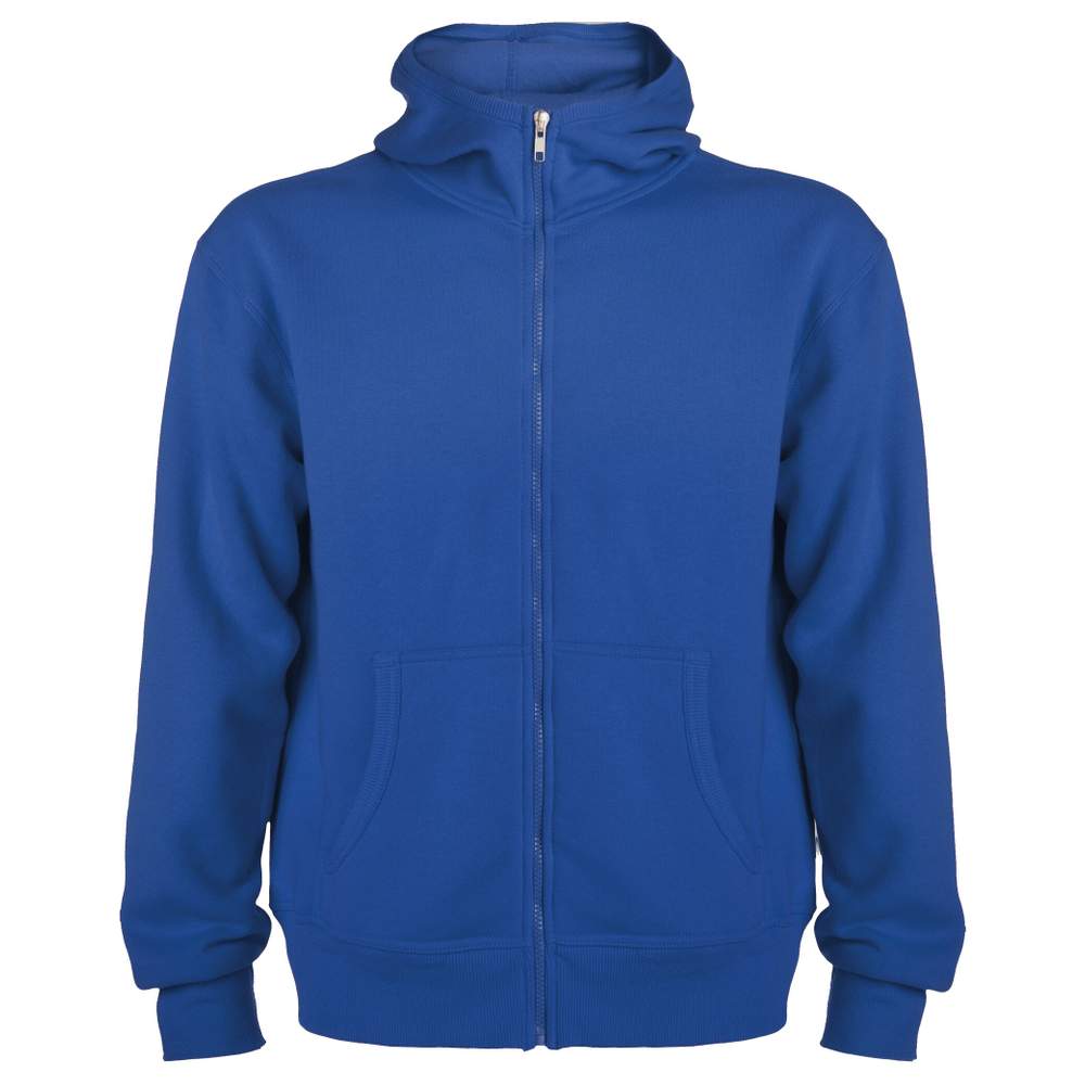 Sudadera casual con cremallera. Acabado de costura en el contorno de la capucha y los bolsillos delanteros. Bolsillo estilo kanguro. Muñecas y cinturón de costura 2x2. Etiqueta desmontable. Composición: 50% algodón, 50% poliéster, malla acolchada. 3% elastano en las muñecas.