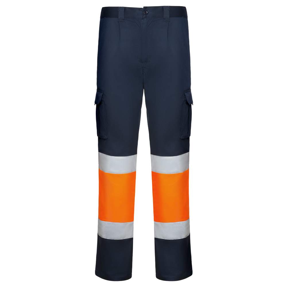 Pantalón multi bolsillos de alta visibilidad diseñado para ofrecer confort y funcionalidad. Este pantalón está equipado con una cintura elástica ajustable para un ajuste óptimo y incluye dos bolsillos delanteros, así como dos bolsillos traseros y dos bolsillos laterales con solapa, todos equipados con cierres de banda auto-agripante. La combinación de colores y las bandas reflectantes mejoran la visibilidad en diversas condiciones. Este pantalón está certificado CE según las normas EN ISO 13688:2013/A1:2021 y EN ISO 20471:2013/A1:2017, clase I.