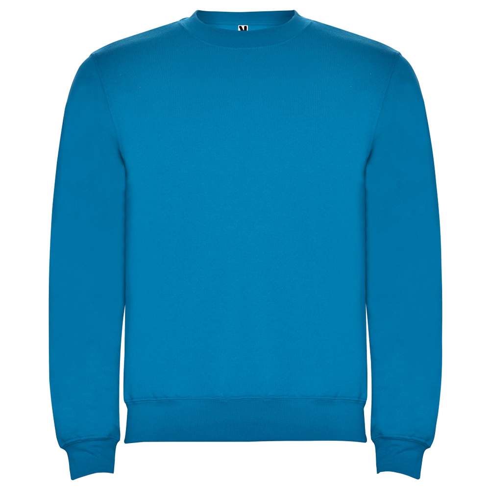 Sudadera de cuello redondo. Cuello, puños y cinturón en punto elástico 1x1 con elastano. Banda de limpieza en el escote. Etiqueta desprendible. Disponible en tallas infantiles. Composición: 50% algodón, 50% poliéster (excepto color gris mezclado: 55% algodón, 40% poliéster, 5% viscosa), punto moldeado de 280 g.