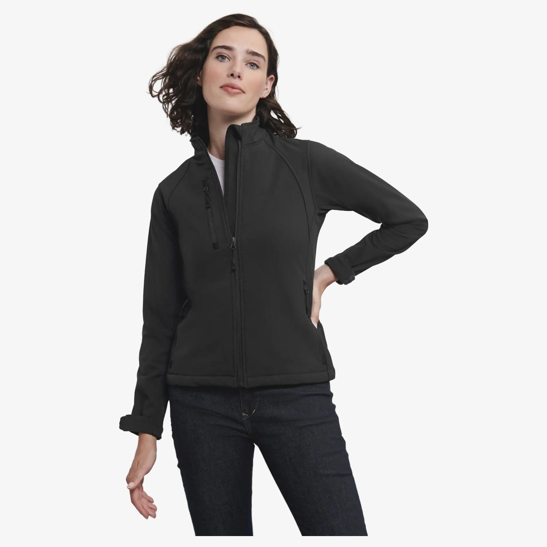 La Veste Softshell Femme es adecuada para usos en exterior con tiempo variable, con material de 3 capas transpirable, acabado cortaviento y cremallera completa. Corte entallado, espalda más larga, bolsillos laterales y en el pecho.