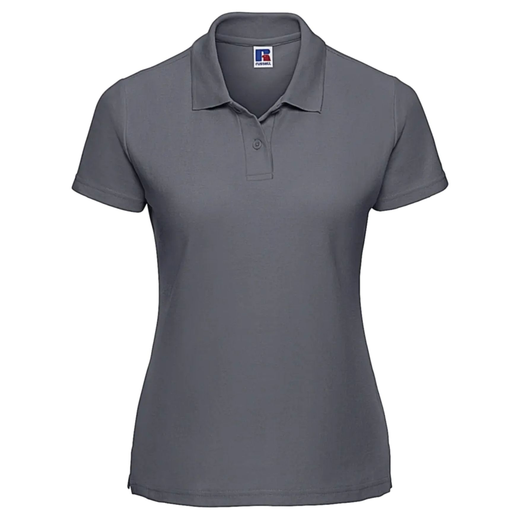 El polo piqué para mujer está confeccionado en tejido compuesto por 65% poliéster y 35% algodón ringspun piqué. Presenta ribete en el cuello con cinta de sujección, una tapeta con dos botones a juego, borde recto en las mangas, costuras laterales y base recta con aberturas en los lados.