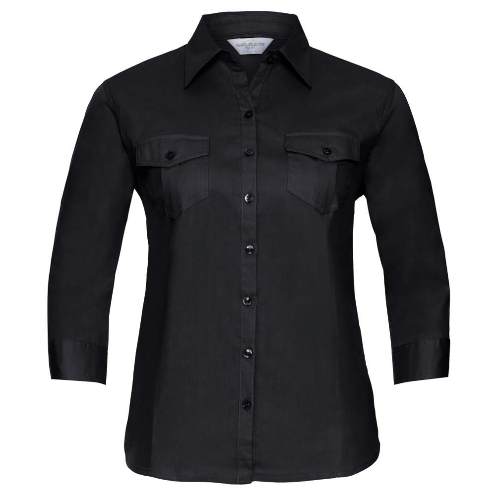 R-918F-0 - Camisa de manga tres cuartos ajustada de tela twill r-918f-0 - black