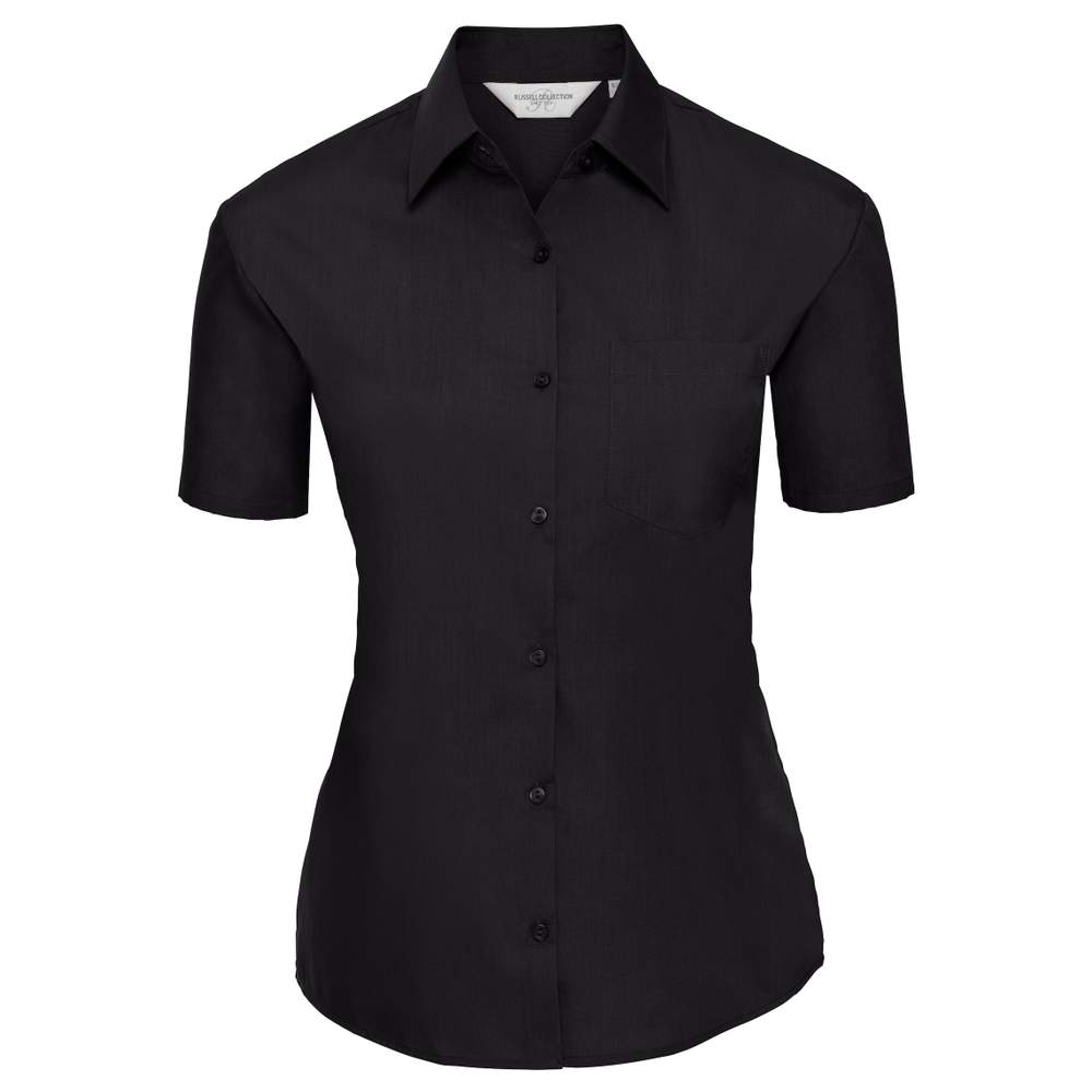 R-935F-0 - Camisa clásica de manga corta de popelina de poliéster y algodón r-935f-0 - black