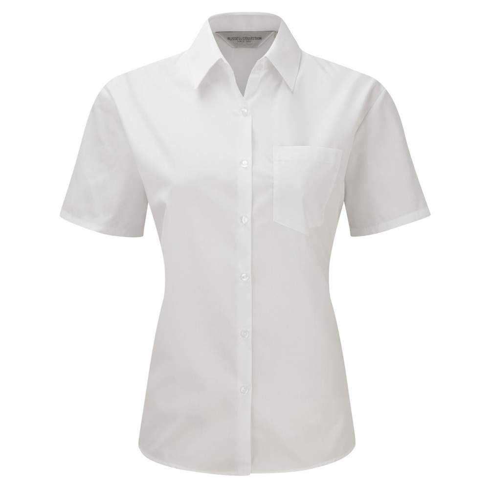 R-935F-0 - Camisa clásica de manga corta de popelina de poliéster y algodón r-935f-0 - white