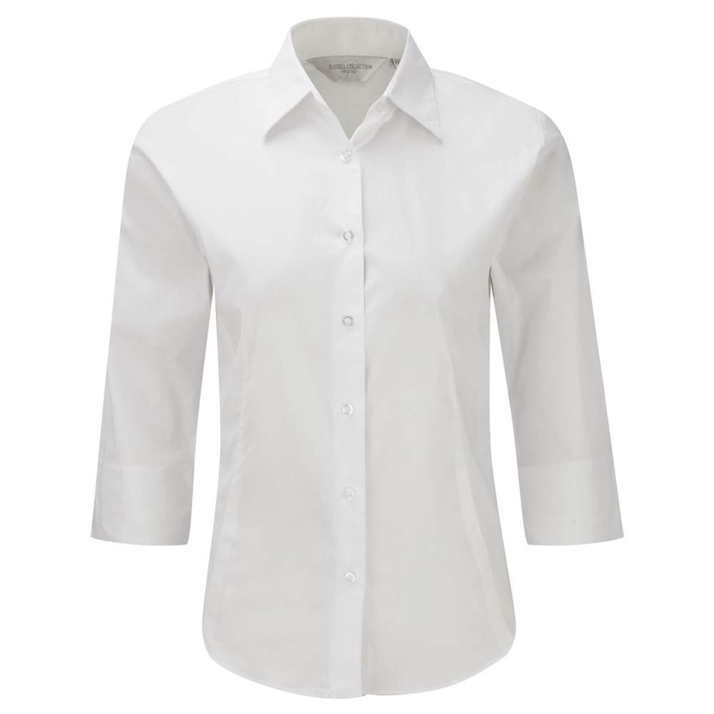 R-946F-0 - Camisa de manga 3/4 ajustada y elástica para mujer r-946f-0 - white