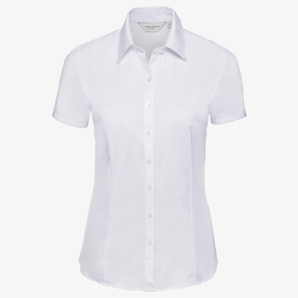 R-963F-0 - Camisa de manga corta ajustada de rayas en espiga para mujer r-963f-0 - white