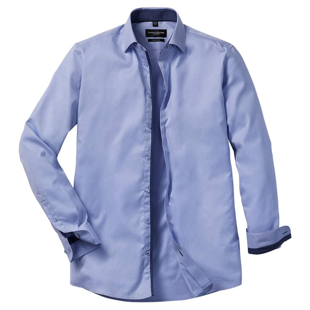 Camisa de manga larga con solapa de contraste de herringbone ajustada r-964m-0 - Light blue mid blue bright navy