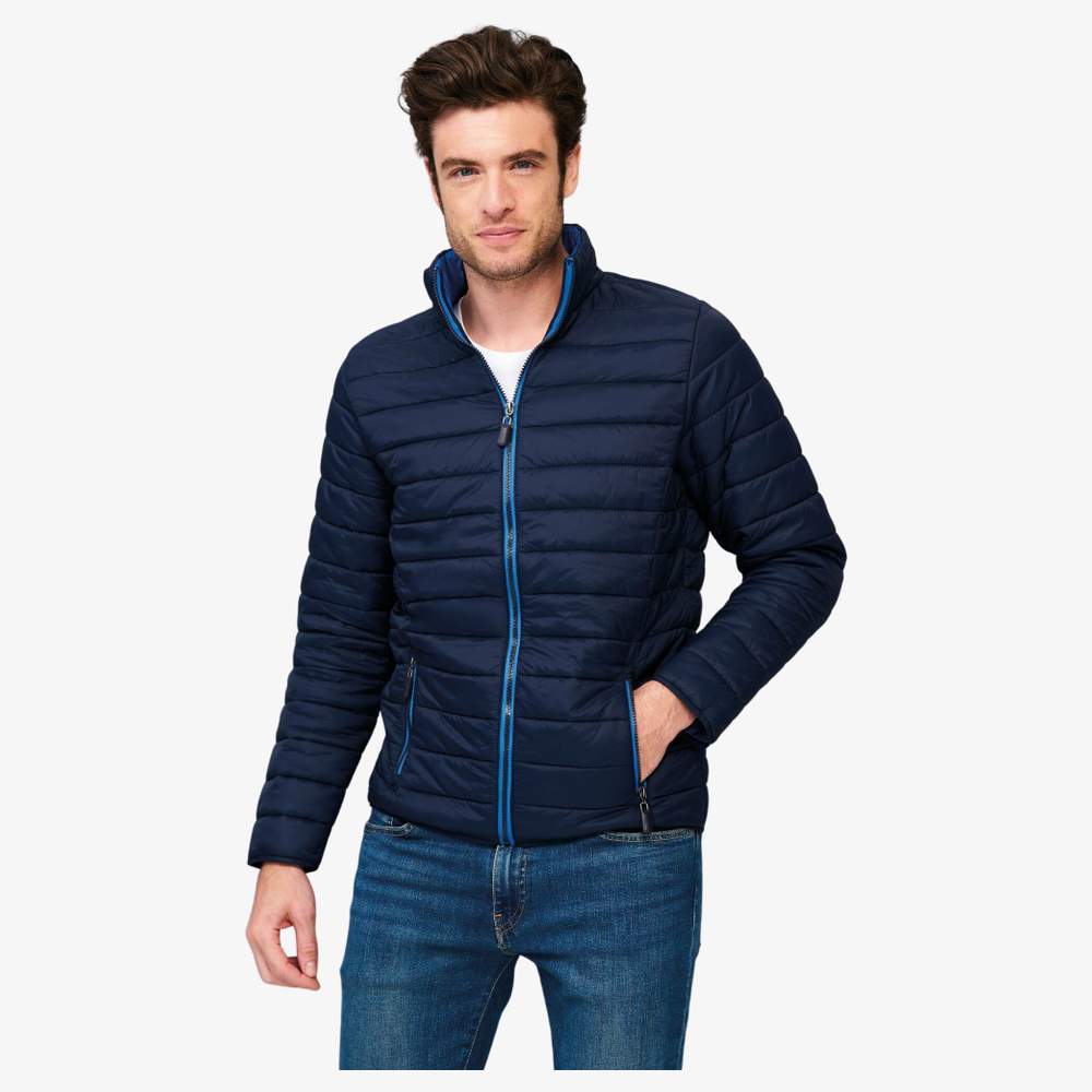 La chaqueta de plumas outdoor acolchada SOL'S Ride men combina funcionalidad y confort para sus actividades al aire libre. Confeccionada en nylon con forro en nylon y relleno de poliéster (180), ofrece un aislamiento térmico eficaz. Dispone de dos bolsillos prácticos con cremallera a juego con el forro y un cuello alto para una mayor protección. Sus acabados en bias del mismo tono en las mangas y en la parte inferior del vestido le confieren un estilo moderno y cuidado.