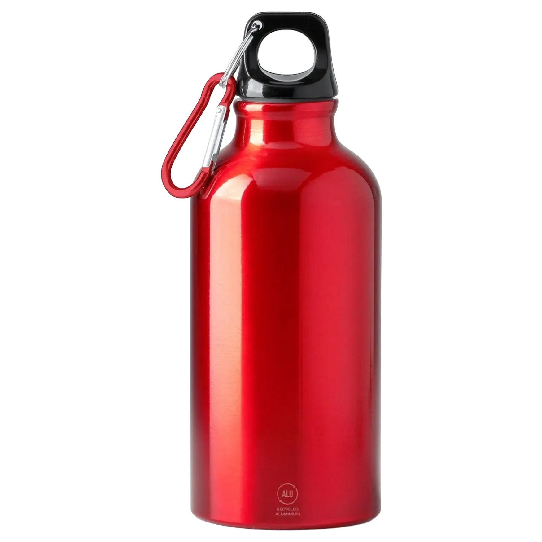 La botella RENKO de aluminio reciclado de pared simple con mosquetón a juego, capacidad 400 ml, permite transportar una bebida a diario. El mosquetón facilita el enganche durante los desplazamientos. No se recomienda para escalada.