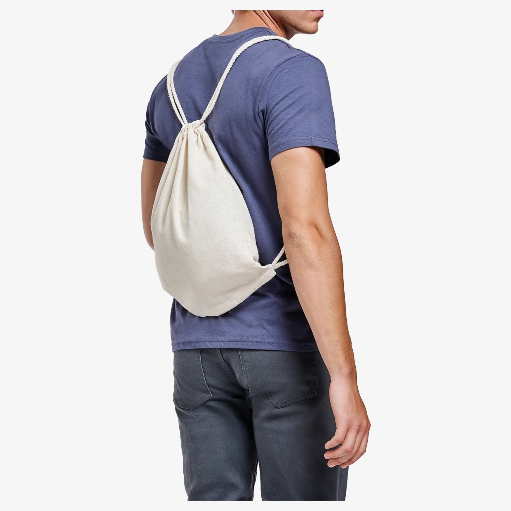 La bolsa de gimnasio MIRLO multiusos de algodón es adecuada para transportar artículos deportivos o de uso diario. Cierre mediante cordón de ajuste en la parte posterior, a tono, con un grosor indicado de 8 mm. Dimensiones: 42 x 34 cm.
