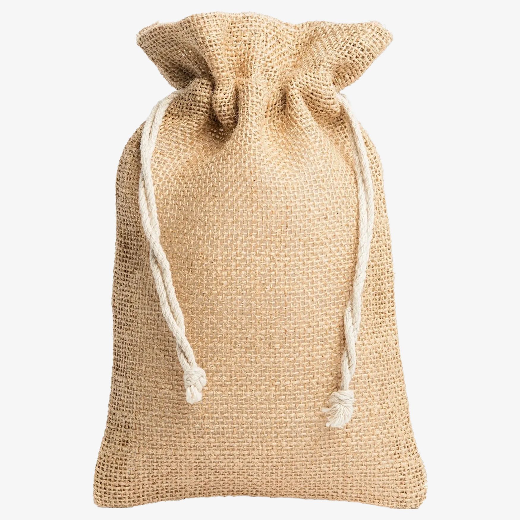 La FLAY es una bolsa con cordones de yute con cierre mediante cordones de algodón. Formato 32 x 25 cm, adecuada para guardar y transportar pequeños objetos.