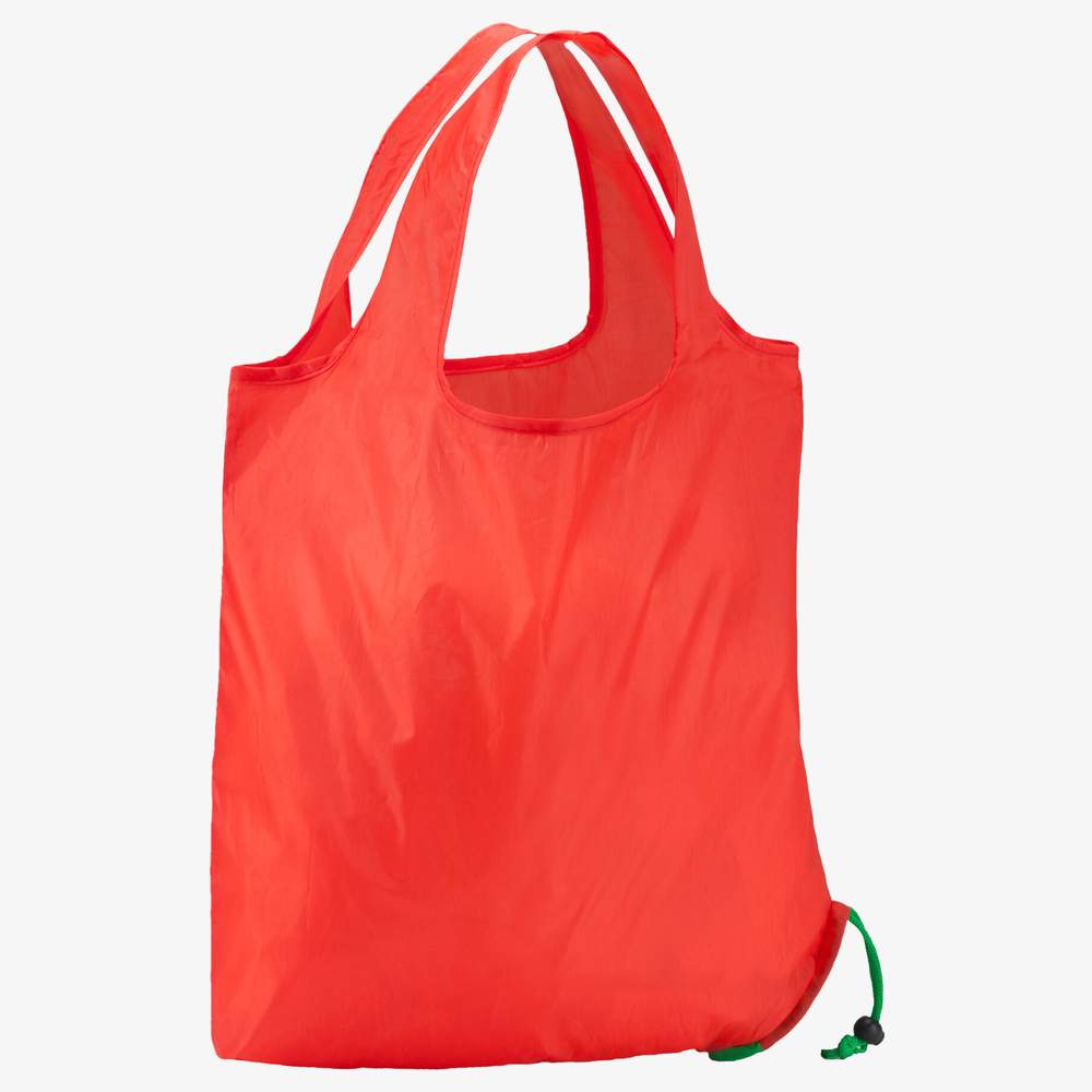 Bolsa plegable con diseño original de diversos modelos de frutas, ideal para el día a día. Presencia de cordones de sujeción que permiten mantener la bolsa una vez plegada. Medidas abiertas: 38 x 38 cm. Composición: poliéster suave.