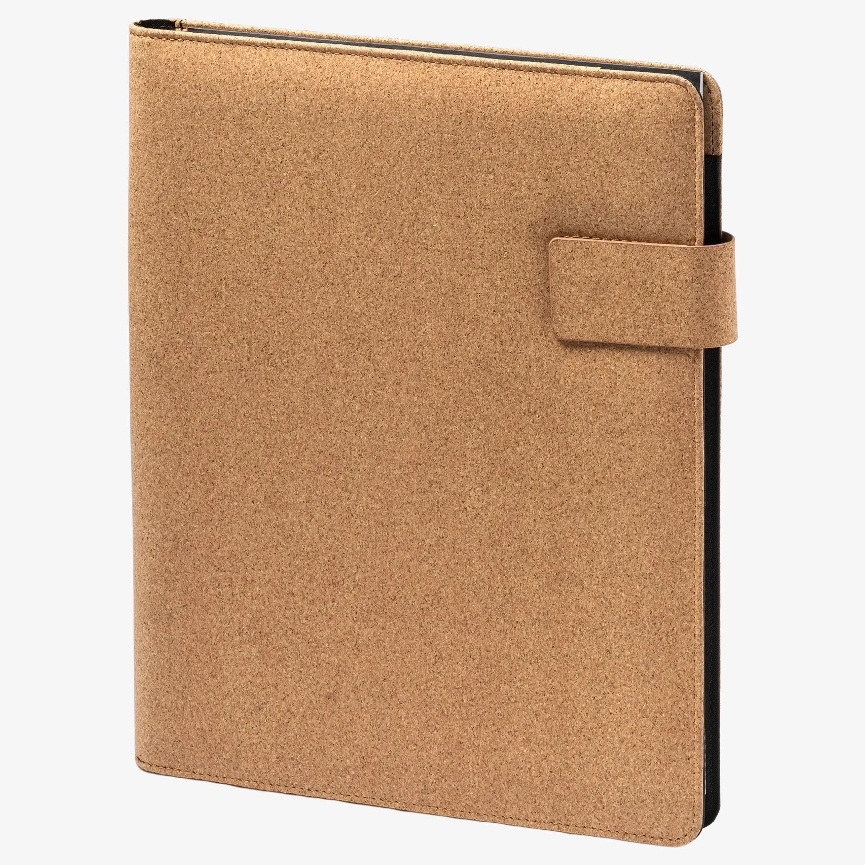 El conferenciante BALOK de corcho natural incluye un bloc de notas desmontable de 30 hojas rayadas, un cierre magnético y 4 bolsillos interiores con portabolígrafos.