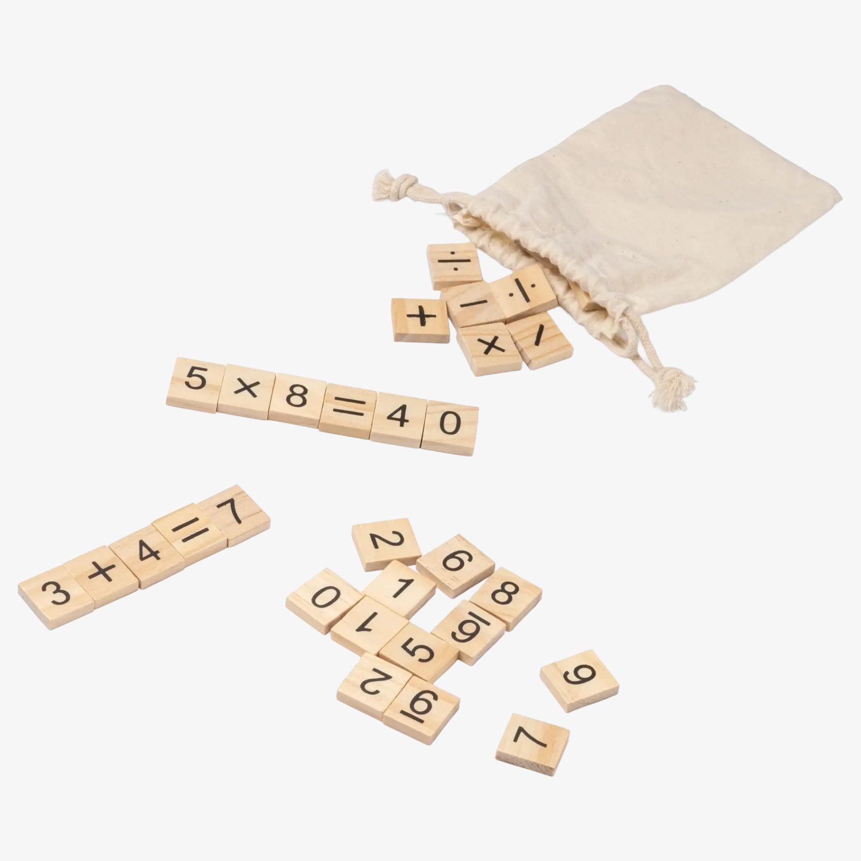 El juego de matemáticas Vernon de madera para niños incluye 32 piezas y una bolsa de algodón. Formato compacto, adecuado para actividades de cálculo y manipulación, en casa o de viaje.