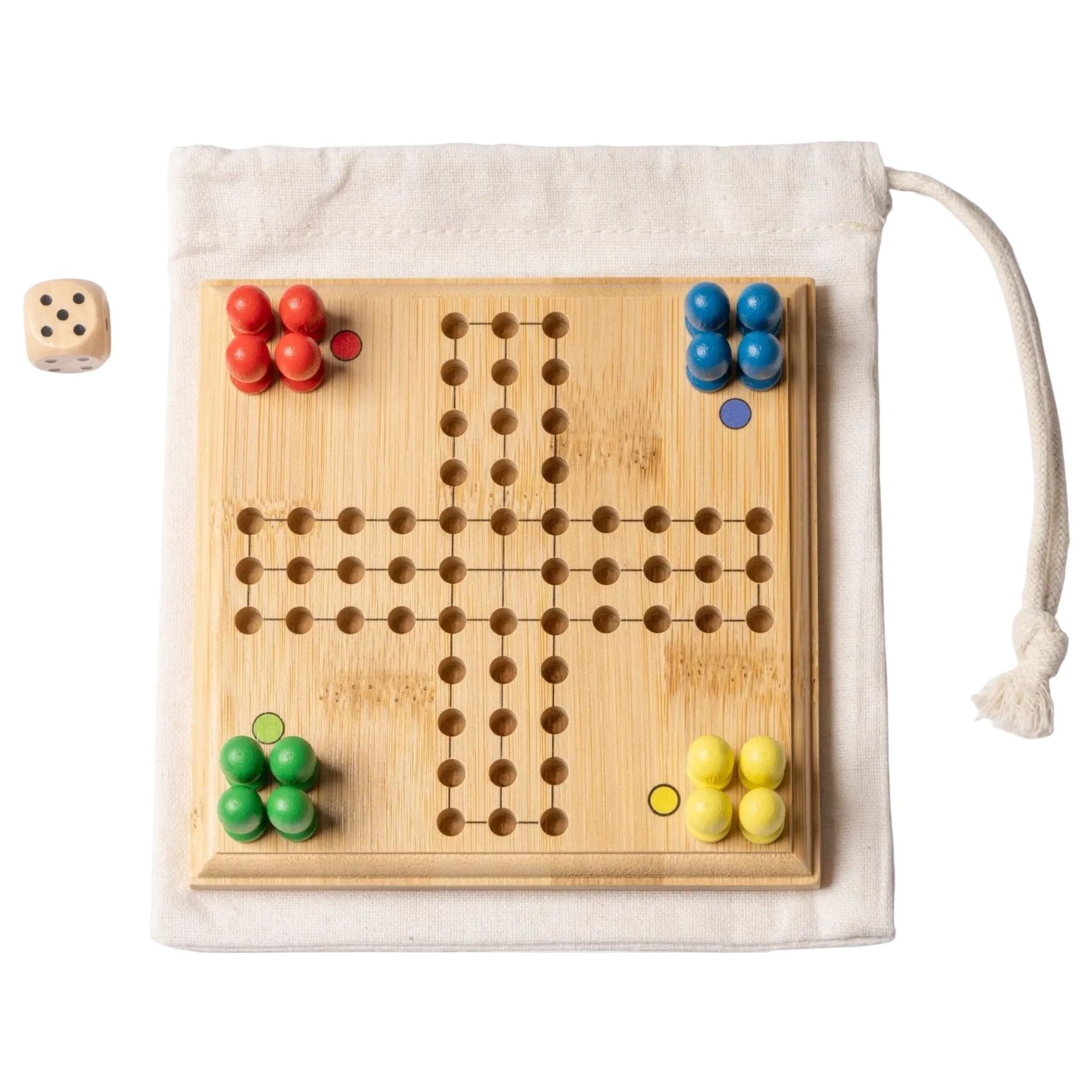 El conjunto de parchís Siscar incluye un tablero, un dado, 16 fichas y una funda de algodón para el almacenamiento. Formato compacto para el transporte y el juego. Dimensiones: 14 x 16 x 3 cm.