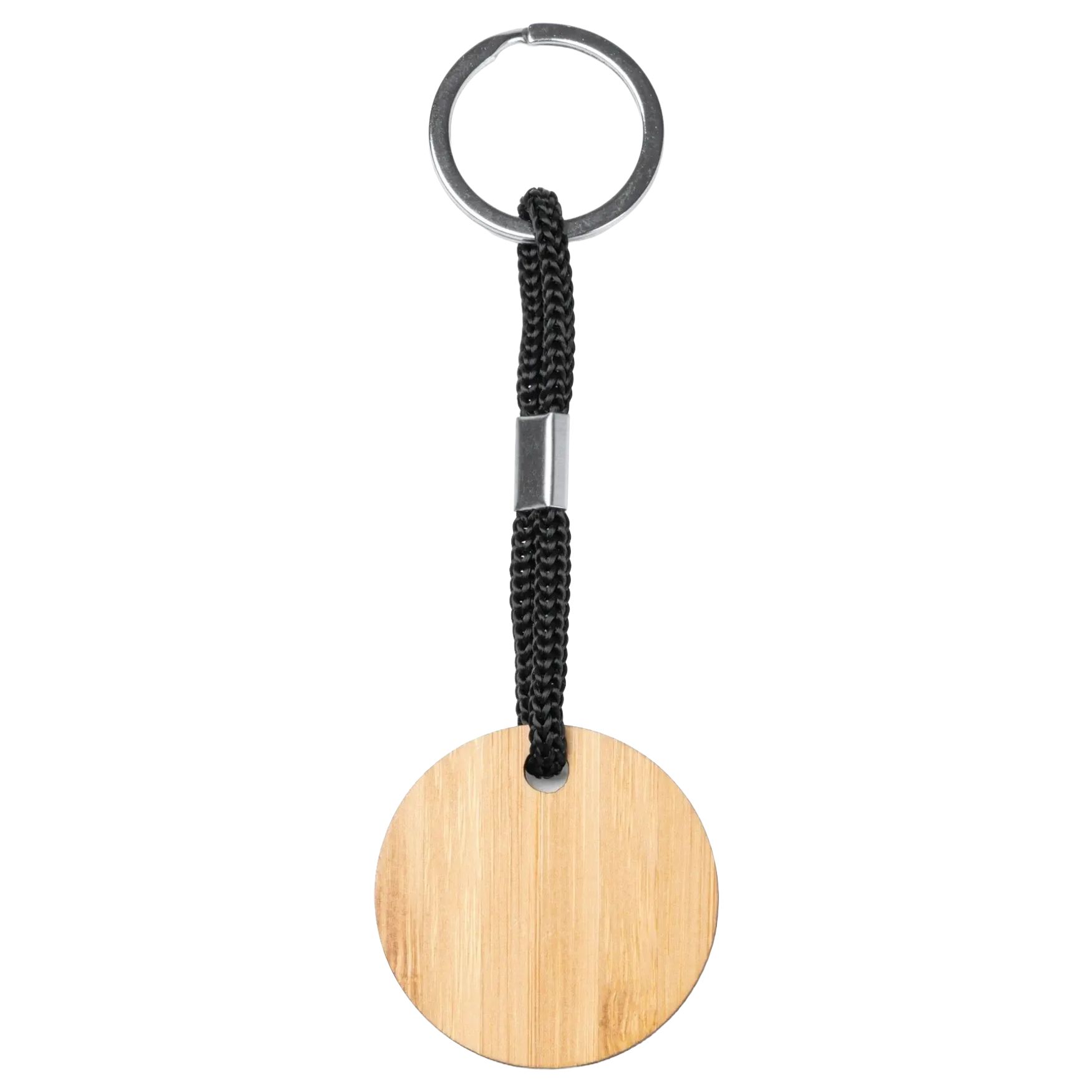 El llavero redondo de madera tiene un cordón resistente de polyester. Permite agrupar las llaves de forma práctica manteniendo ligereza y compacidad.