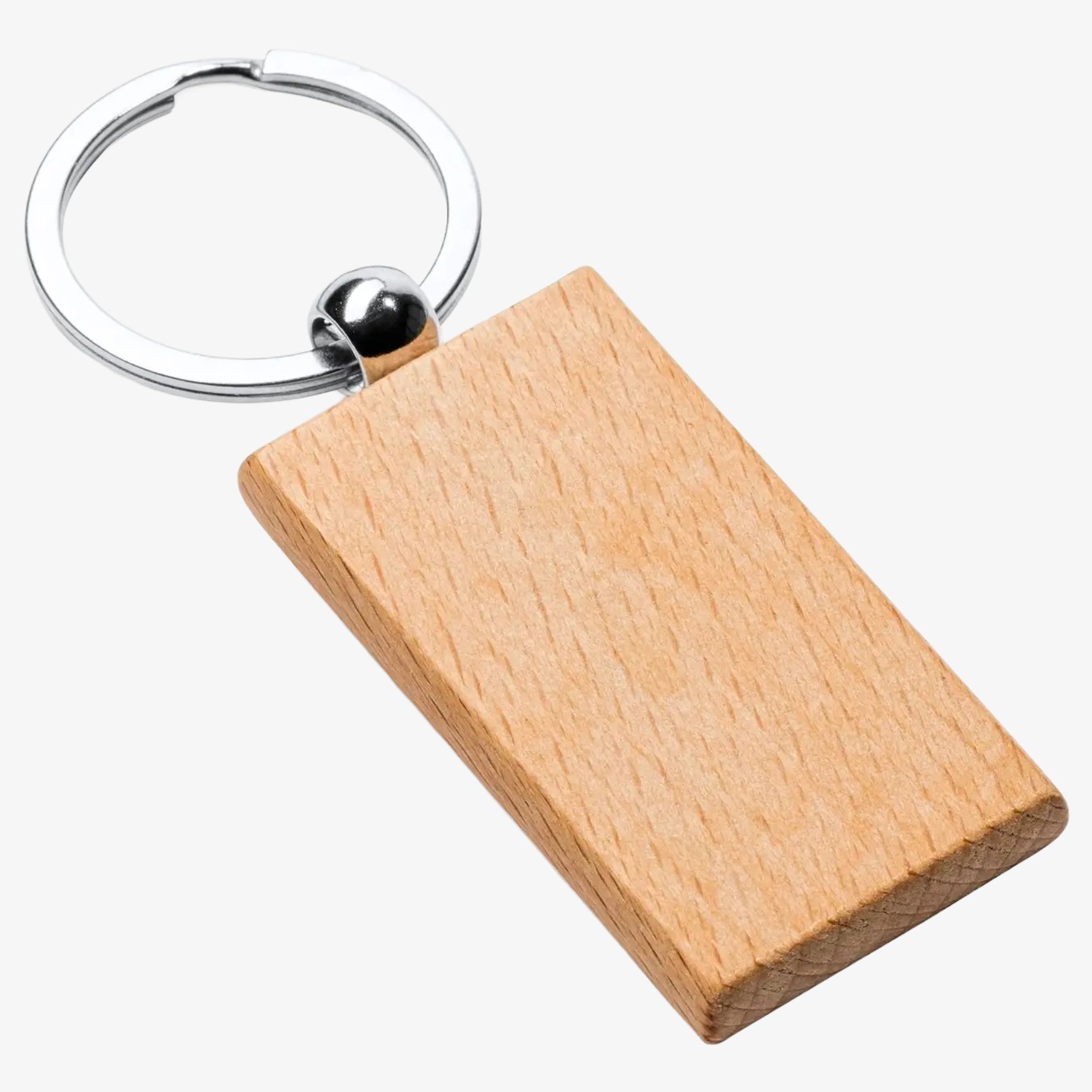 El llavero SILA está diseñado en madera natural con una anilla de metal para sujetar llaves. La composición combina madera y metal, ofreciendo un objeto simple y funcional.