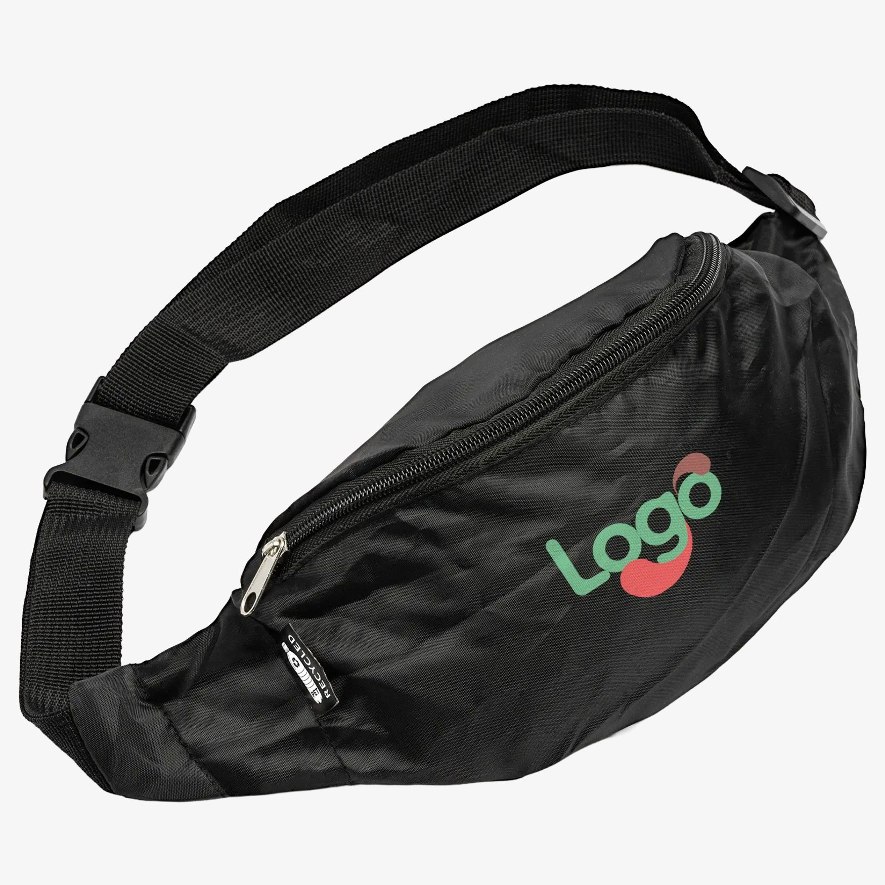 La riñonera CAMBRAI está fabricada en RPET 210 D e incluye una costura principal así como un cierre de cremallera. Sus dimensiones son 38 x 12 x 13 cm.