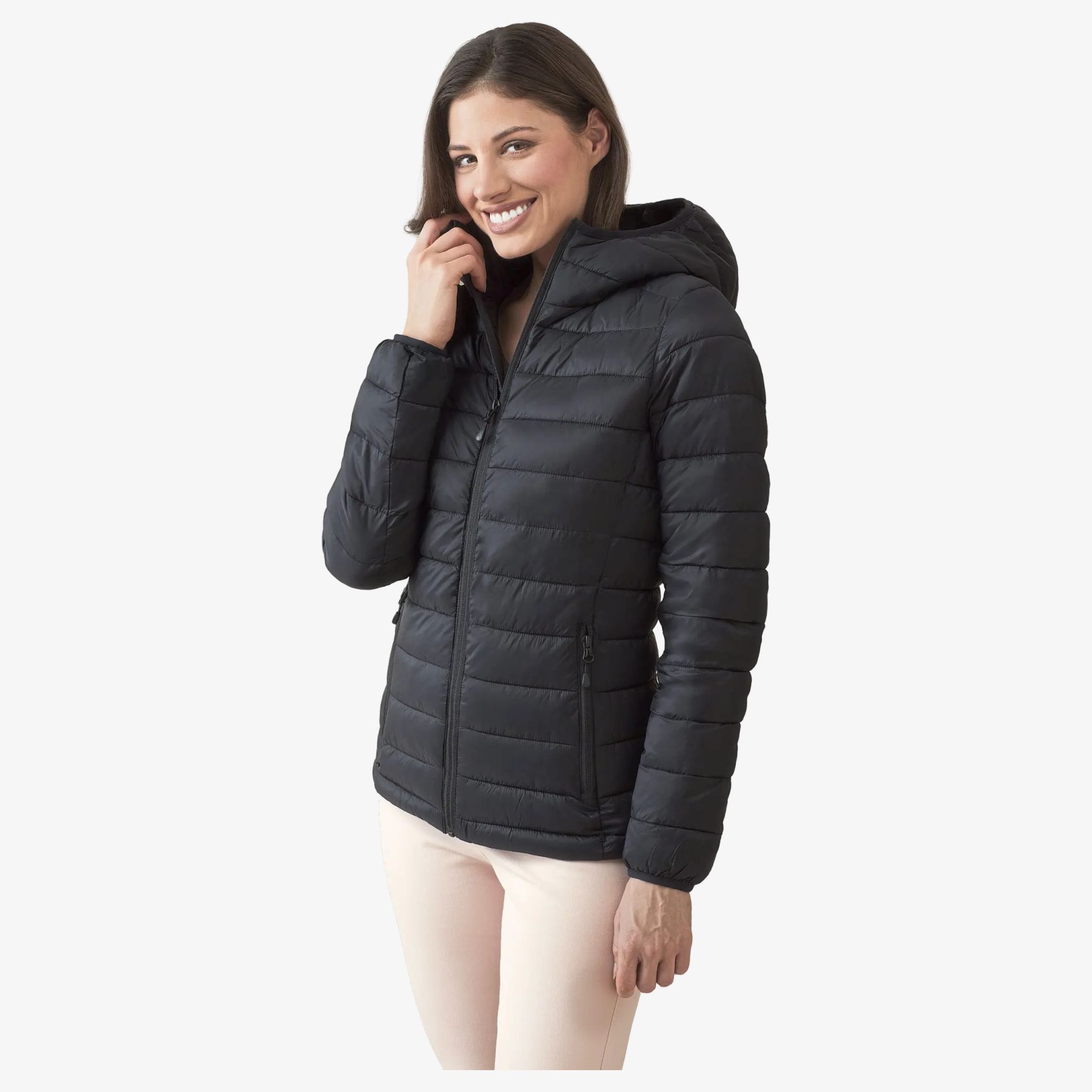 La Lux Padded Jacket Women es una chaqueta acolchada de mujer de nailon con relleno de poliéster, diseñada para limitar la pérdida de calor. Capucha con cuello, cintura ajustable y bolsillos con cremallera para un uso diario. Bolsillo interior utilizable para guardar la chaqueta.