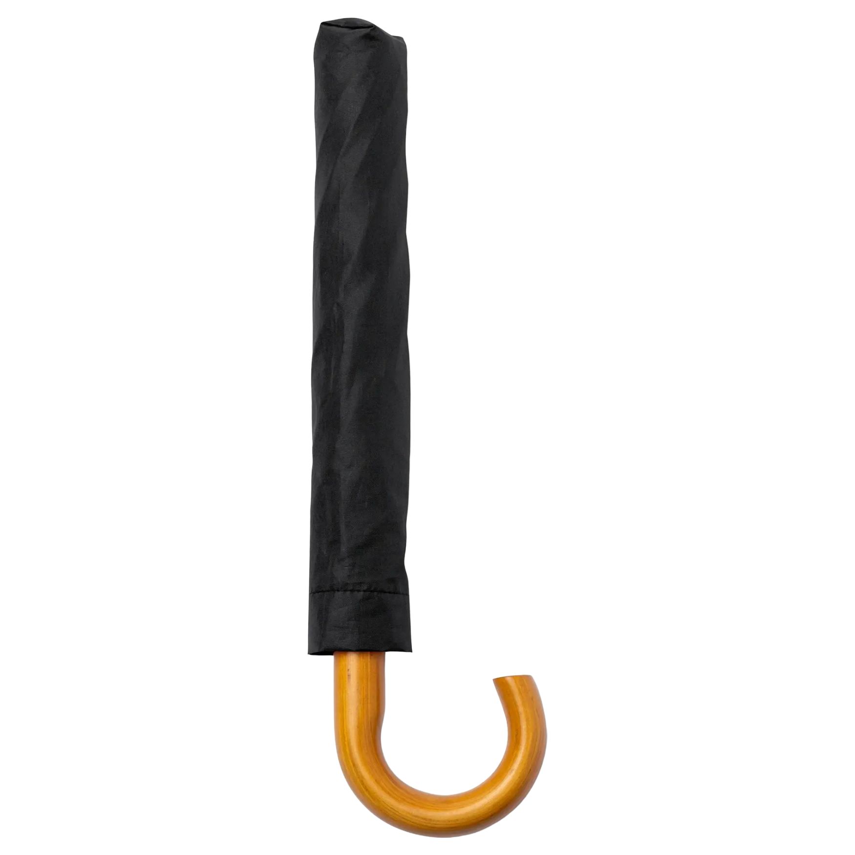 El paraguas Kodiak es adecuado para un uso diario bajo la lluvia, con apertura automática y mango de madera natural. Tela de RPET con tejido pongee 190 T, cierre mediante banda autoadherente y funda a juego.