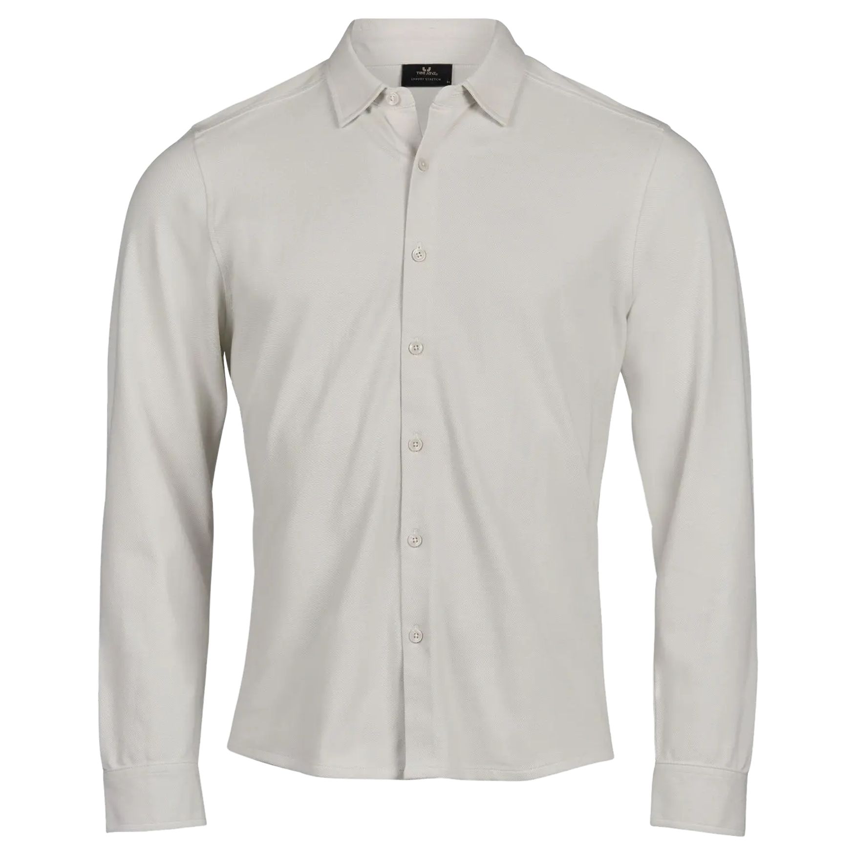La Luxury Stretch Shirt es una camisa elástica para hombre en punto mini piqué, con corte entallado, cuello en el mismo material y puños abotonados. El tejido preencogido y lavado con enzimas aporta un acabado liso y una comodidad flexible para el uso diario.