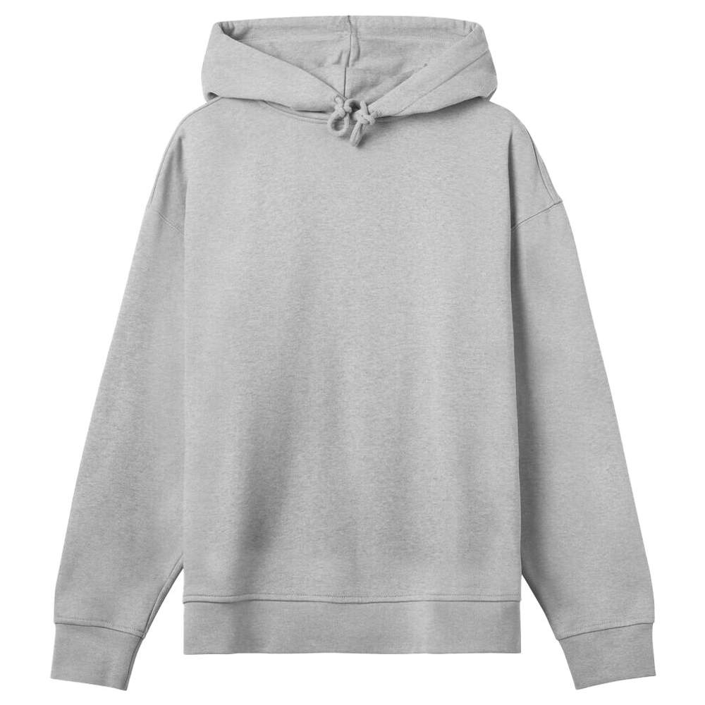 Sudadera con capucha para mujer con un corte amplio y cuadrado. Confeccionada a partir de una mezcla de algodón orgánico grueso y poliéster reciclado, esta sudadera ofrece un confort óptimo. Sus hombros caídos y costados gruesos le confieren una estructura marcada. Las costuras planas en los hombros y la cinta de limpieza interior del cuello mejoran el confort y la durabilidad. Las costuras de doble aguja refuerzan los costados. Dispone de una capucha de doble grosor con un cordón de ajuste grueso y un detalle interior en forma de media luna.