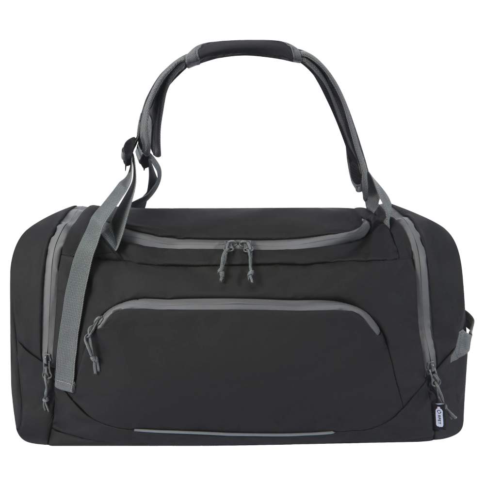 Mochila 2-en-1 resistente al agua fabricada con materiales reciclados, incluidas las cremalleras. Cuenta con un compartimento principal espacioso con una abertura en forma de U para un almacenamiento y acceso fáciles, dos bolsillos laterales con cremallera (incluyendo un compartimento para zapatos), un bolsillo frontal con cremallera, un bolsillo de malla para botella de agua en la parte posterior y un borde reflectante para mayor visibilidad. Esta mochila se puede transportar de 3 maneras diferentes: a mano, al hombro, o como mochila con sus correas acolchadas y ajustables. Los materiales reciclados incluyen el tejido principal, el forro, la correa y las cremalleras. Capacidad: 35 litros. Sin PVC. Dimensiones: 47 x 28 x 29 cm. Composición: poliéster reciclado