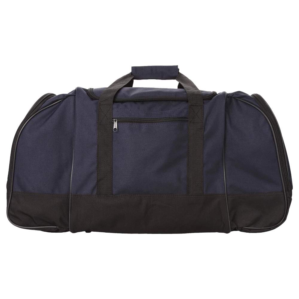 Bolso de viaje diseñado para facilitar el transporte de pertenencias personales durante los desplazamientos. Ofrece un espacio de almacenamiento principal accesible a través de una abertura con cremallera. Las correas ajustables permiten un porte cómodo, mientras que los bolsillos laterales y delanteros ofrecen acceso rápido a los pequeños objetos. Este bolso está fabricado de poliéster, un material conocido por su resistencia y ligereza. Sus dimensiones permiten usarlo como equipaje de cabina para muchos transportistas.