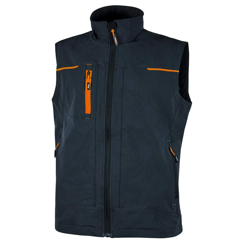Chaleco confeccionado en tejido U-4 que ofrece comodidad, resistencia y suavidad. Presenta propiedades impermeables y respirabilidad que permiten un secado rápido. Este chaleco está equipado con dos bolsillos delanteros, un bolsillo en el pecho con cremallera para teléfono móvil y dos grandes bolsillos interiores. Tiene una espalda alargada para una mejor protección y está dotado de tiras reflectantes en el cuello y en la espalda para una mayor visibilidad.