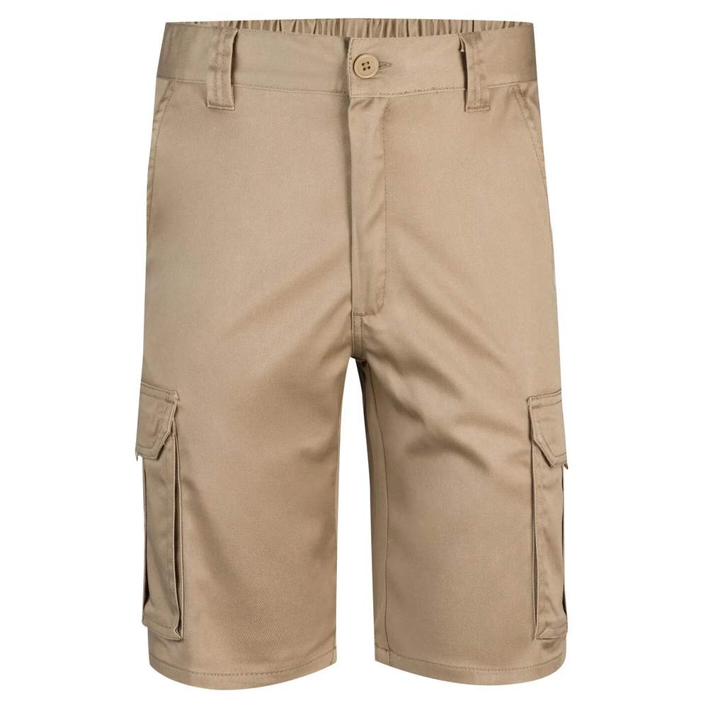 Bermuda estirado multipockets. Cierre central de cremallera y botón. Costuras contrastadas. Cintura elástica. Doble costura de seguridad. Seis bolsillos: 2 bolsillos franceses, 2 bolsillos con cierre central doble solapa con velcro y cremalleras, dos bolsillos traseros de refuerzo con solapa y velcro. Composición: 46% algodón, 38% EMET, 16% poliéster.