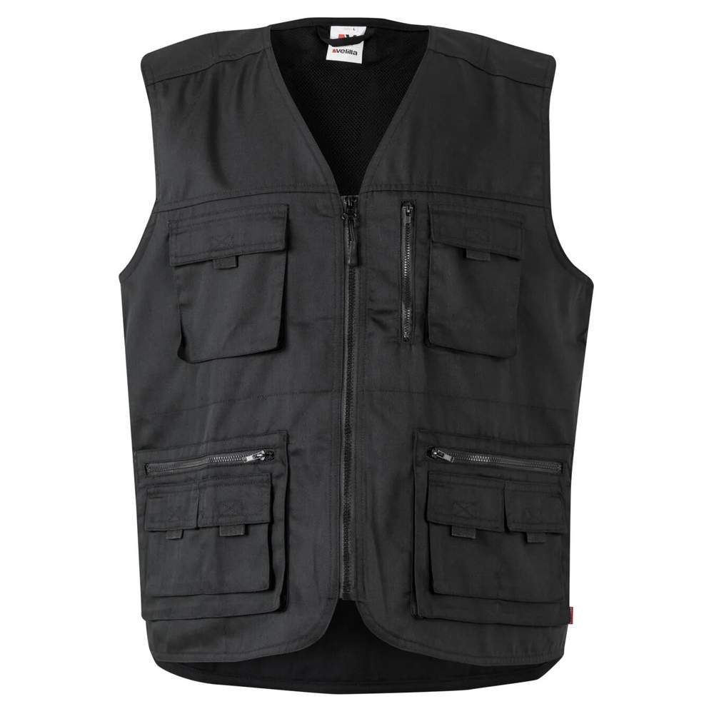 Chaleco de trabajo multipocket sin mangas. Cierre central con cremallera. Parches delanteros y traseros. Interior en lona. 9 bolsillos: 2 bolsillos de pecho con solapa, correderas y banda autoagripante, 1 bolsillo de pecho vertical con cremallera, 2 bolsillos delanteros con cremallera con solapa y 2 bolsillos más con solapa, correderas y banda autoagripante.