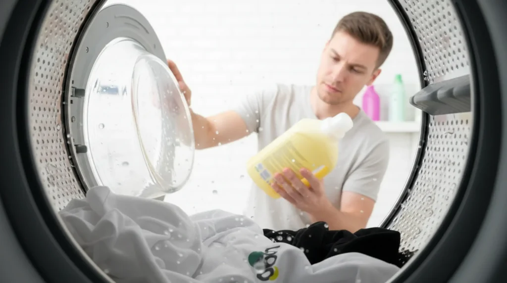 Optez pour une lessive douce, sans agents blanchissants. Ils peuvent abîmer les couleurs et affaiblir les fibres textiles. Si possible, préférez une lessive liquide : la lessive en poudre a tendance à laisser des résidus, surtout lors d’un lavage à basse température, ce qui peut créer de légères traces sur les zones personnalisées. Et si vous souhaitez vraiment prolonger la durée de vie de vos vêtements, évitez l’adoucissant, souvent trop agressif pour les personnalisations.