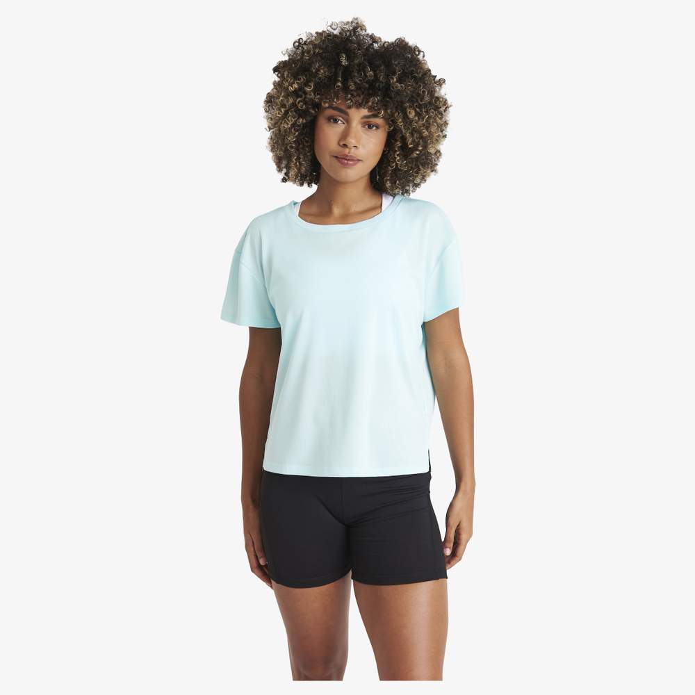 Ce tee shirt sportif pour femme présente une coupe ample et un dos ouvert moderne. Conçu pour le confort et la performance, il est fabriqué à partir de tissu Neoteric™ léger et respirant. Les manches montées et le col rond assurent un ajustement confortable. Le col arrière est renforcé pour une durabilité accrue. Ourlet à double surpiqûre pour une finition soignée. Une étiquette décollable permet de faciliter le changement de marque.