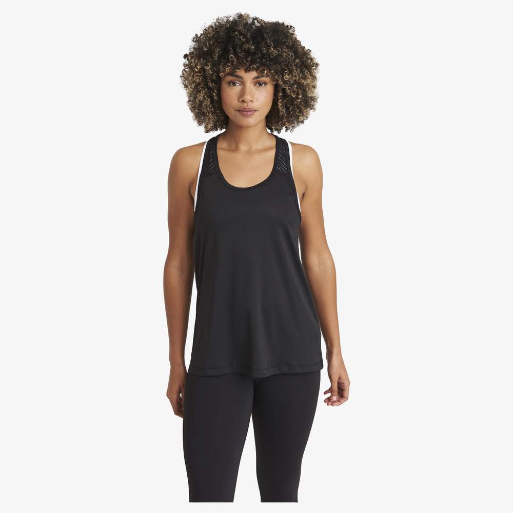 Ce débardeur de sport léger et durable allie fonctionnalité. Avec son dos nageur en résille, son ourlet plus long à l'arrière et sa coupe féminine, il trouvera une place de choix dans votre garde-robe sportive. Optimisez votre performance grâce à ses propriétés anti-humidité et son séchage rapide.