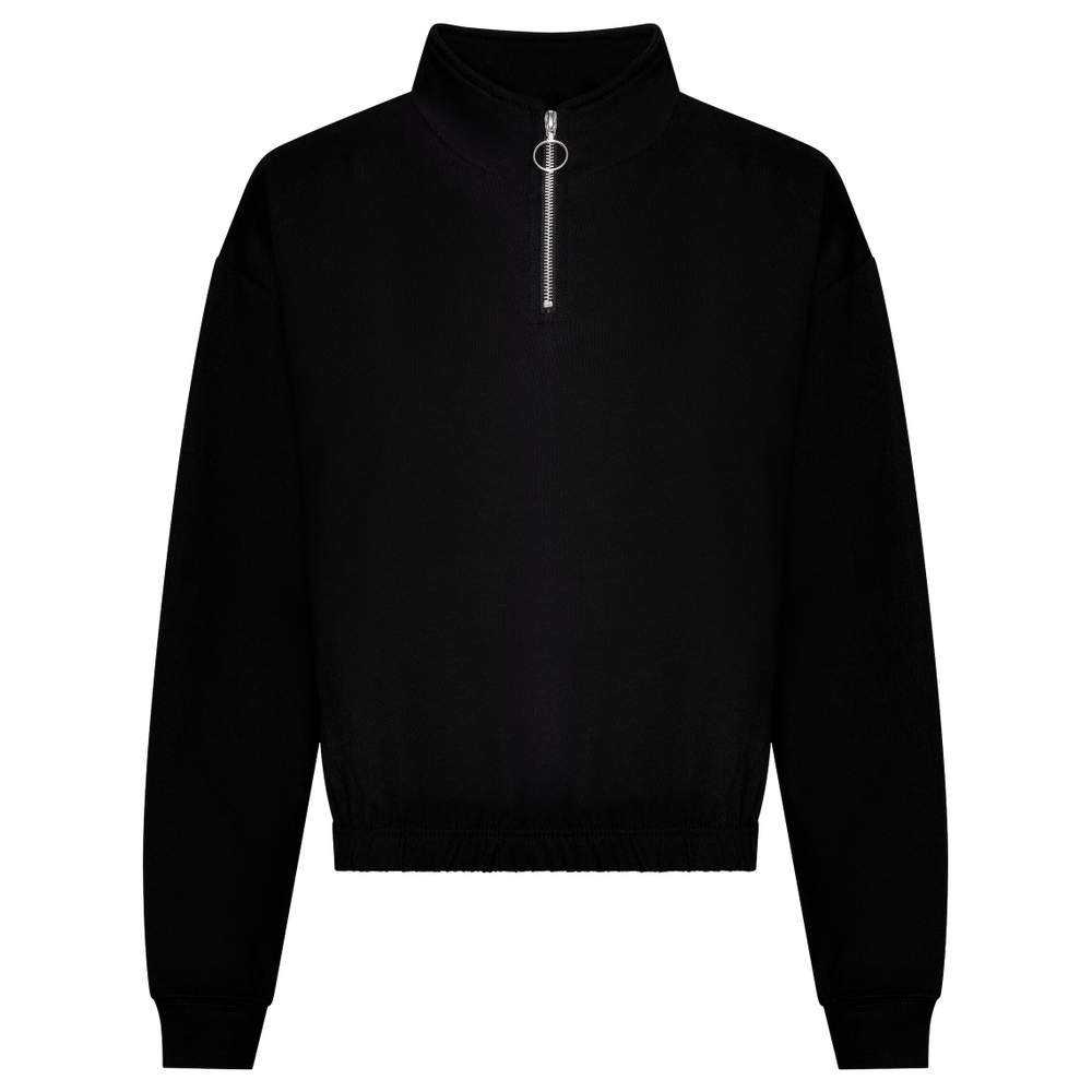 Women's cropped 1/4 zip sweat jh037 - Deep black
