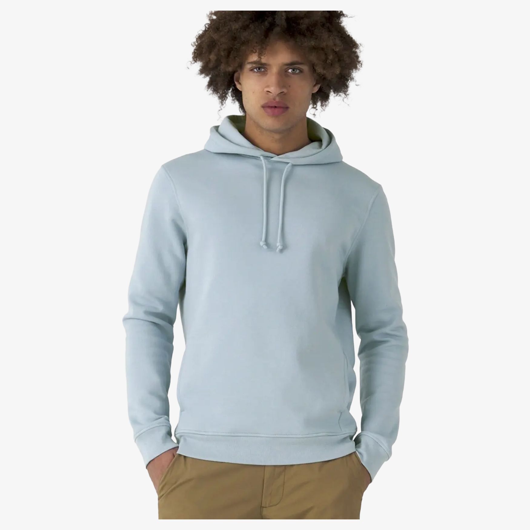 Sweat-shirt à capuche au design tendance, confectionné en coton organique ou en conversion et en polyester recyclé. Il est doté d'une capuche doublée avec cordon de serrage, d'une bande de propreté en chevron et de poches situées sur les coutures latérales. L'étiquette visible dans le col indique « Hi! I'm Organic ». Il ne comporte pas d'étiquette de marque et son intérieur est gratté pour un confort accru. Le tissu résistant offre un toucher ultra-doux.