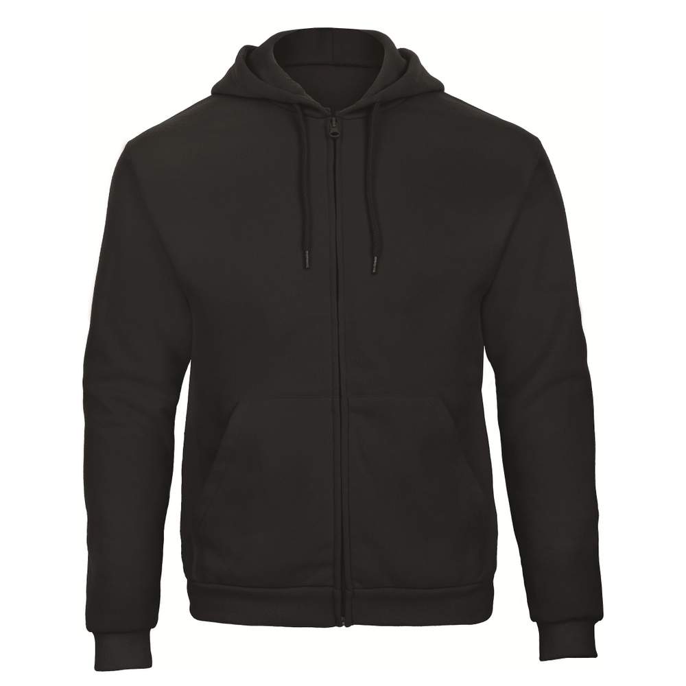 Sweat grand zip avec capuche. Bord inférieur et poignets en côte élastanne 1x1. Double surpiqûre au niveau des emmanchures. Poches kangourous. Capuche doublée avec cordon ton sur ton. Manches montées. Coutures latérales. 50% coton / 50% polyester.
