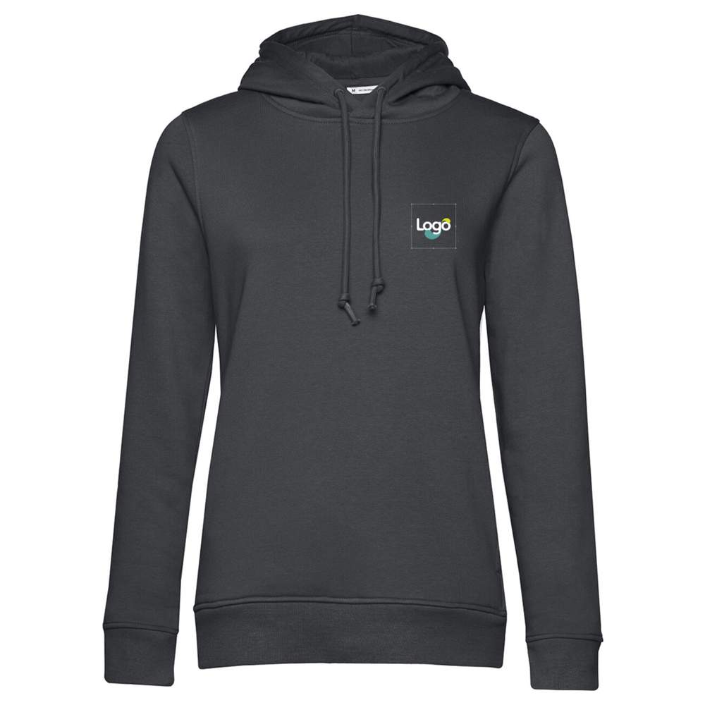 Sweat-shirt pour femme à capuche, organique ou organique en conversion et au design tendance. Capuche doublée avec cordon. Bande de propreté en chevron. Poches situées sur les coutures latérales. Étiquette visible dans le col « Hi! I'm Organic ». Sans étiquette de marque. Intérieur graté. 100% coton à l'extérieur. Tissu résistant et toucher ultra-doux. Composition : 80% coton peigné Ringspun, mélange organique ou organique en conversion certifié, 20% polyester recyclé certifié. Possibilité de personnaliser ce sweat-shirt à capuche en broderie ou par impression de votre logo.