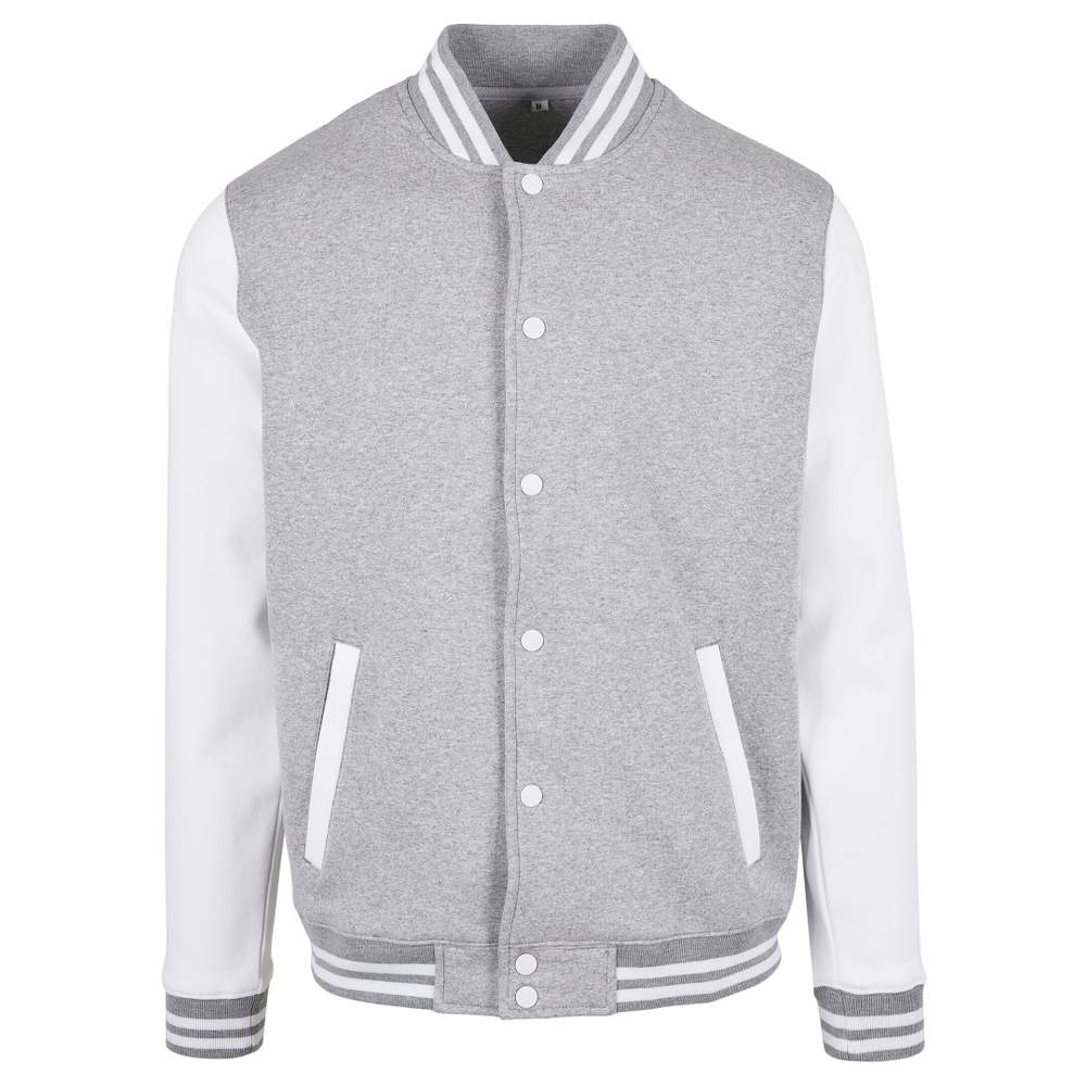 Basic college jacket Veste universitaire coton polyester bb004 personnalisé - Heather grey white