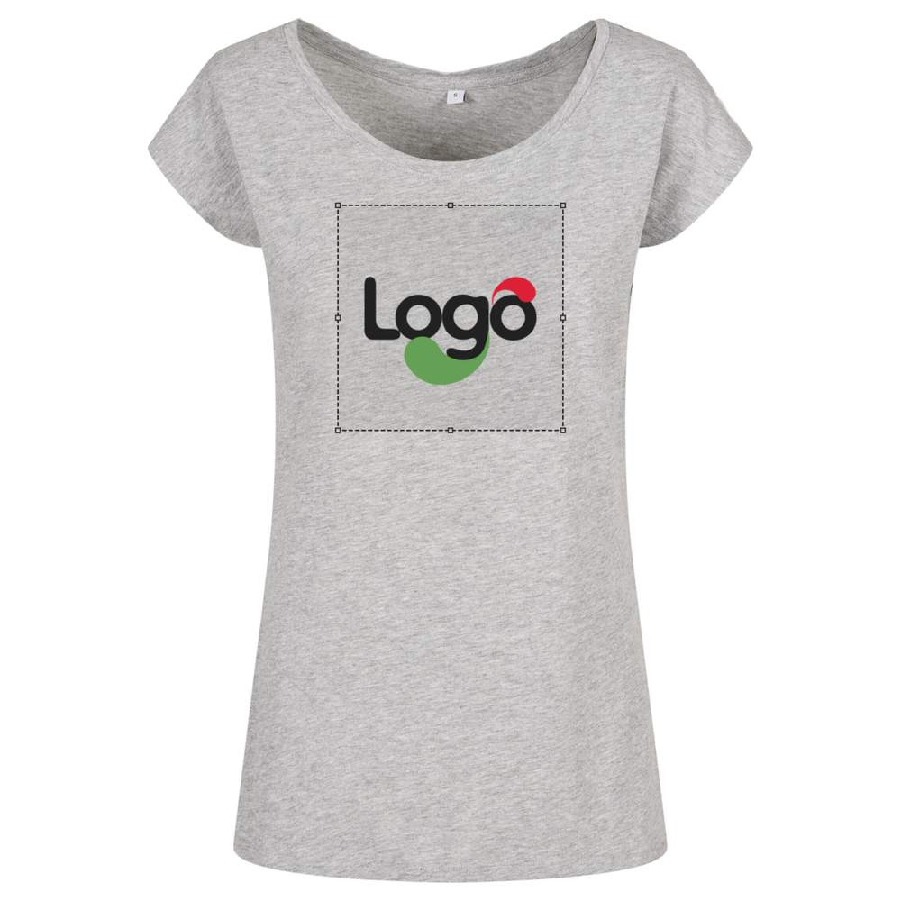 Ce tee-shirt à col dégageé pour femme offre une coupe ample et confortable. Son encolure large assure un tombé flatteur. Confectionné en 100% coton, il est idéal pour un confort quotidien. Possibilité de personnalisation pour afficher votre identité visuelle.