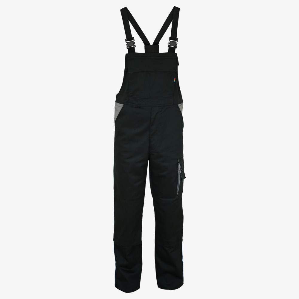 Ce pantalon de travail salopette offre une conception fonctionnelle pour divers environnements professionnels. Il intègre des éléments pratiques tels que des poches arrière sécurisées par bande auto-agrippante, une poche dédiée pour les outils (règle, téléphone, stylo) avec des plis à soufflet pour un accès facile, et des renforts aux genoux pour l'ajout optionnel de coussinets. Les bandes réfléchissantes sur les coutures latérales améliorent la visibilité dans des conditions de faible luminosité. La salopette est dotée d'une fermeture par boutons-pression et de boucles en plastique pour un ajustement confortable et sécurisé. Les soufflets extérieurs sont équipés de bande auto-agrippante.