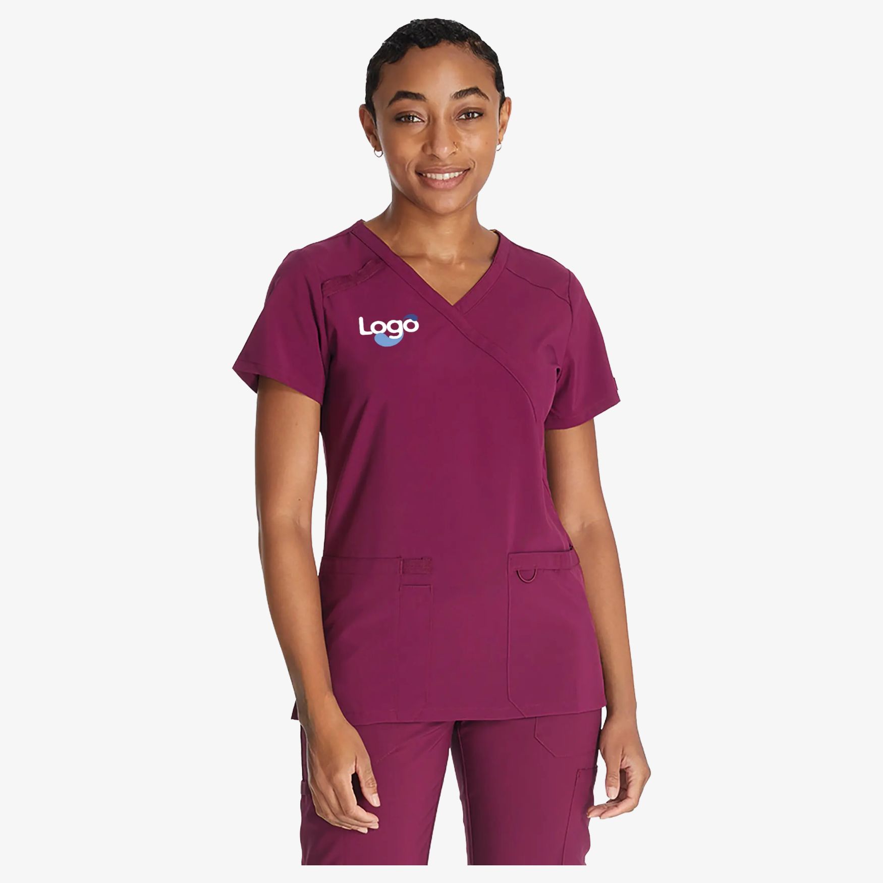 Haut cache-coeur pour femme. Coupe contemporaine avec empiècements d'épaule. Dispose de deux poches plaquées, d'une fente pour stylo avec ruban sergé utilitaire, de boucles d'instruments à l'épaule droite et de boucle élastique dans la poche gauche. Etiquette tissée ton sur ton signature et bande sergée logo à l'intérieur du col arrière. Ventilations latérales pour un confort optimal. Composition : 95% polyester, 5% elasthanne. Possibilité de personnalisation en broderie pour afficher votre logo ou votre identité visuelle.