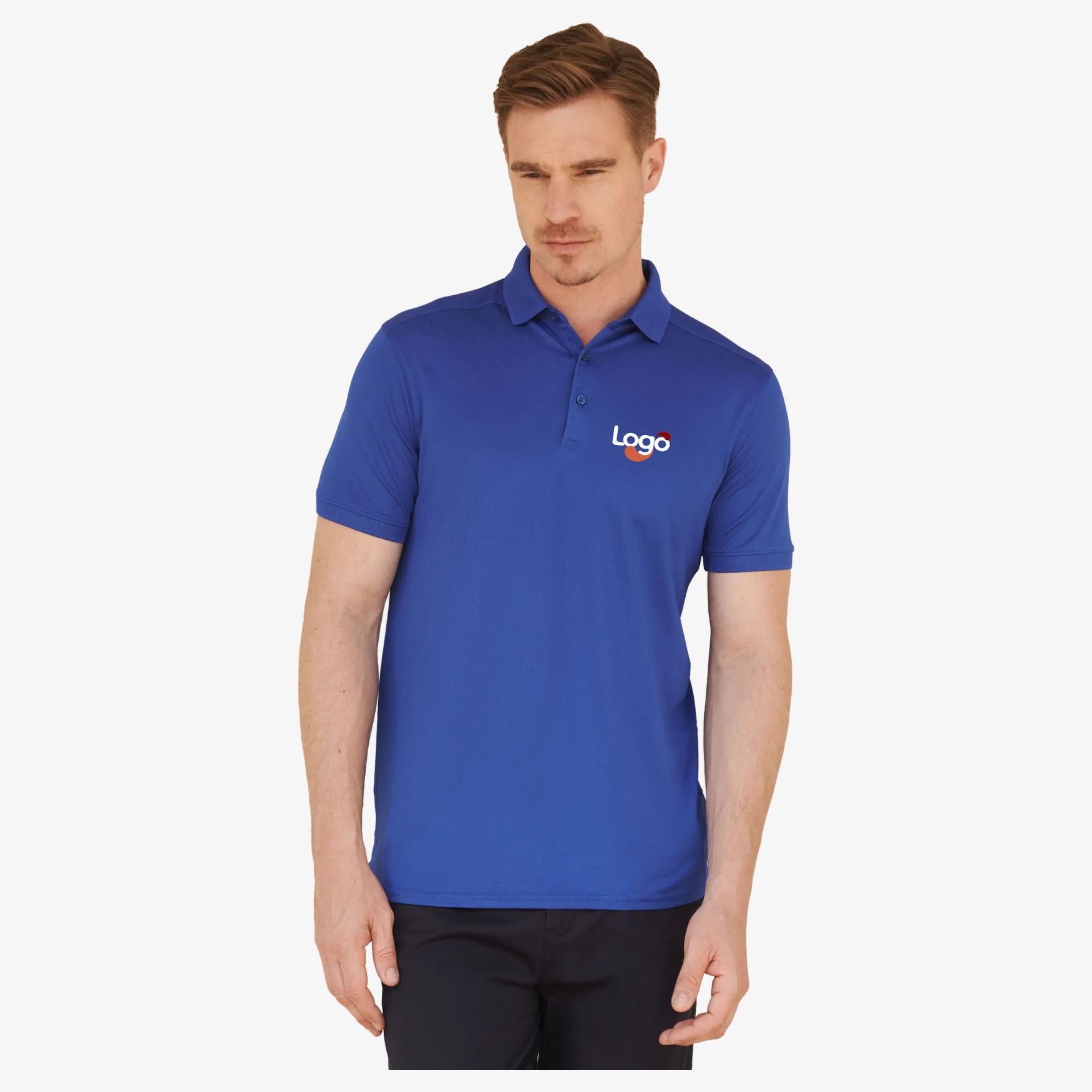 Le polo homme polyester stretch est conçu en maille piquée, avec un col plat à pointes raccourcies et des emmanchures bord côte. Il comporte une plaquette 3 boutons ton sur ton. La composition est de 98 % polyester et 2 % élasthanne.