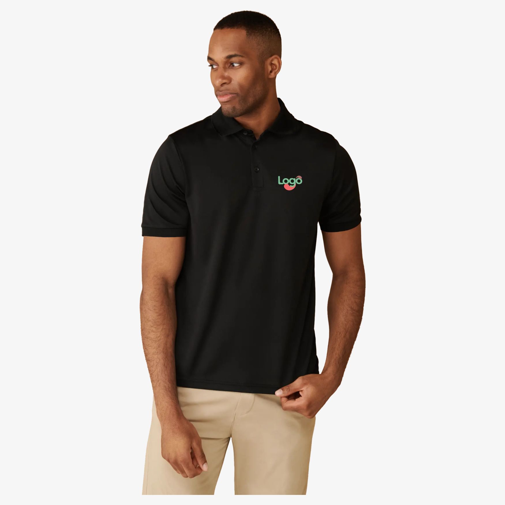 Le polo homme est confectionné en maille piquée composée à 100 % de polyester recyclé issu de bouteilles plastiques. Il dispose d'une plaquette 3 boutons ainsi que d'un col et de bouts de manches en bord côte 1 x 1.