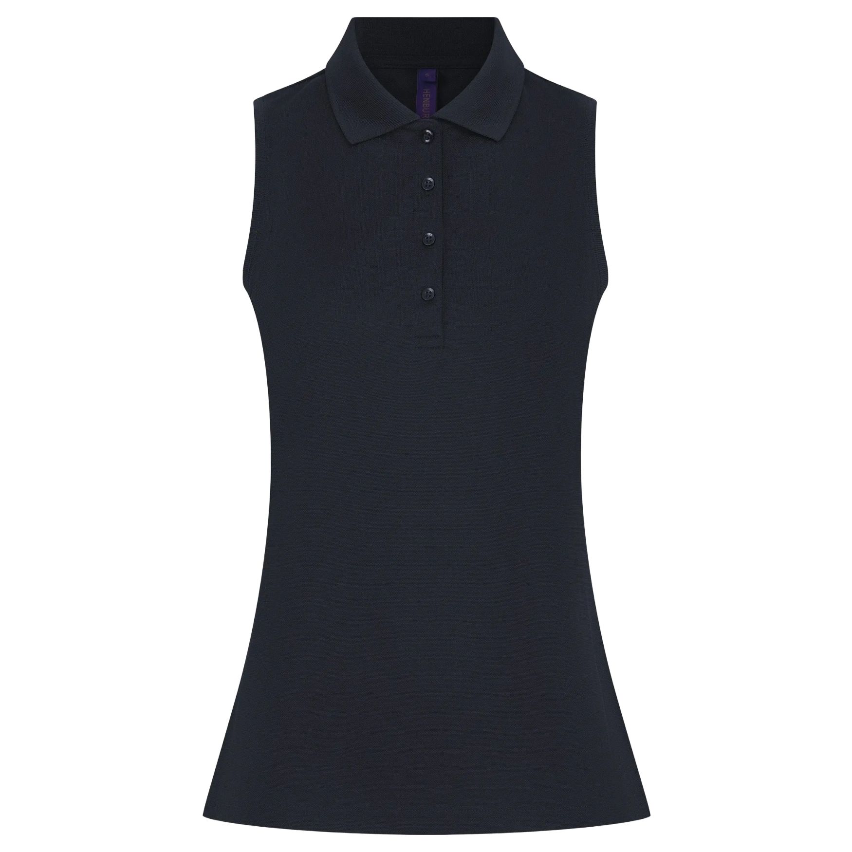 Le polo sans manches pour femme utilise la technologie respirante Coolplus®. Il comprend une patte étroite à quatre boutons, des bords côtes au col et aux emmanchures ainsi que des fentes latérales.