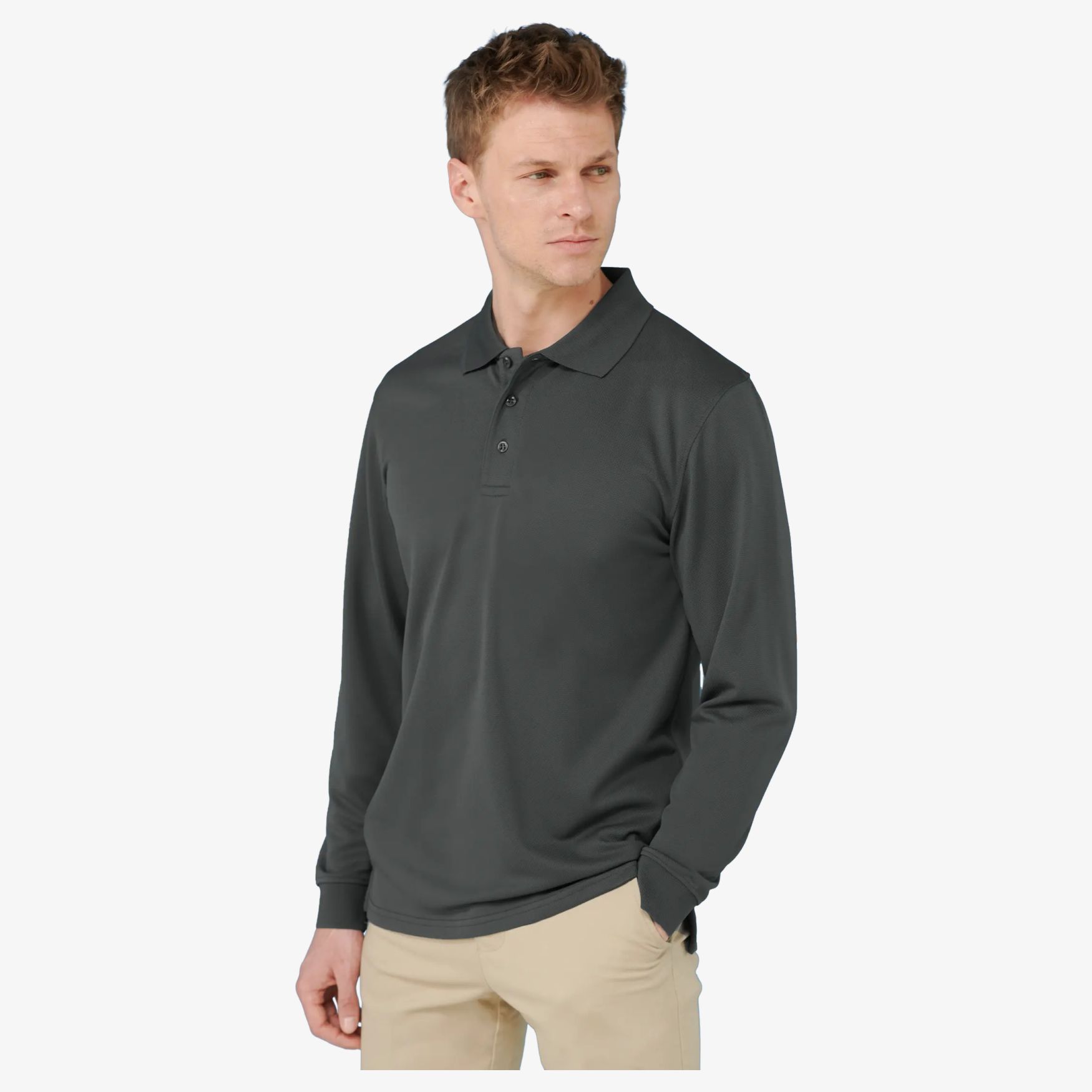 Le Unisex long sleeved polo shirt est un polo manches longues en maille micro piquée respirante, avec coupe classique et 3 boutons ton sur ton. Composition : 100 % polyester Cool Plus®.