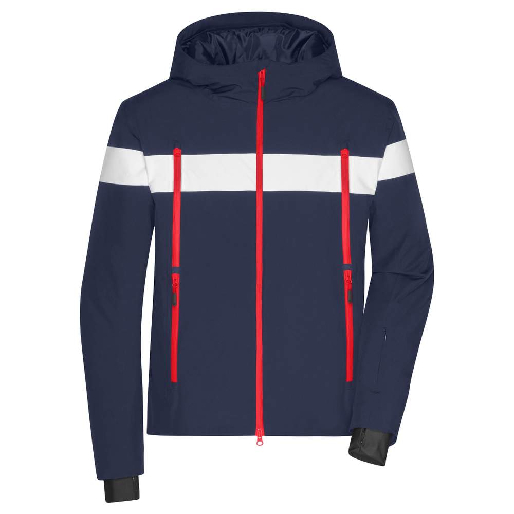 Veste d'hiver sportive, imperméable, conçue avec un rembourrage DuPont™ Sorona® (matière première végétale renouvelable). Le matériau extérieur offre une protection coupe-vent et imperméable avec une colonne d'eau de 10 000 mm, tout en assurant une propriété respirante et une perméabilité à la vapeur d'eau de 5000 g/m²/24h. Les coutures sont étanches, et la capuche fixe est réglable avec un rembourrage. Des empiècements contrastés sont présents sur les manches, à l'avant et au dos. La veste est dotée d'une fermeture zippée des deux côtés, imperméable et coupe-vent sur toute la longueur, avec une protection du menton. Elle dispose de quatre poches avant avec fermetures zippées imperméables, d'une poche intérieure avec fermeture zippée et d'une poche intérieure en maille, ainsi que d'une petite poche à fermeture zippée sous le bras gauche. Un pare-neige réglable avec réglage de la largeur à l'ourlet, des poignets élastiques avec boucle pour le pouce et un zip pour la décoration au dos complètent cette veste.