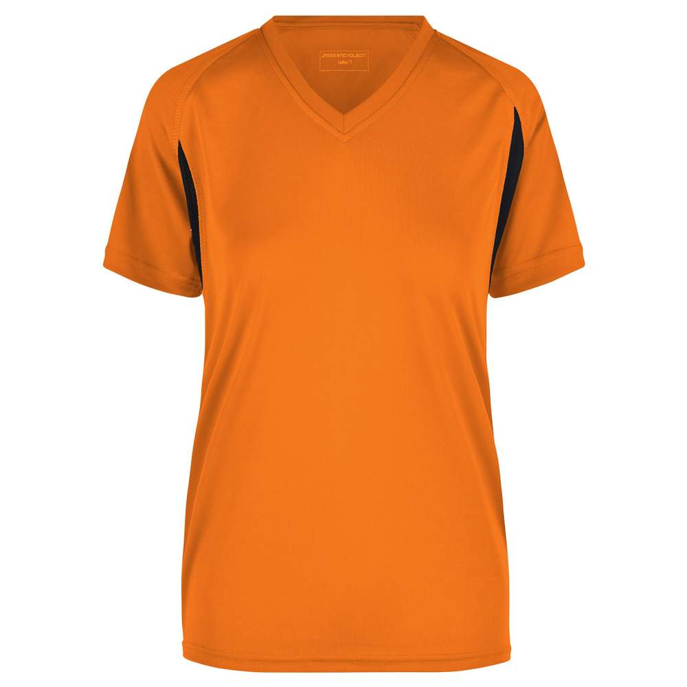 Ladies' running-t Tee shirt respirant col V jn316 - Orange black