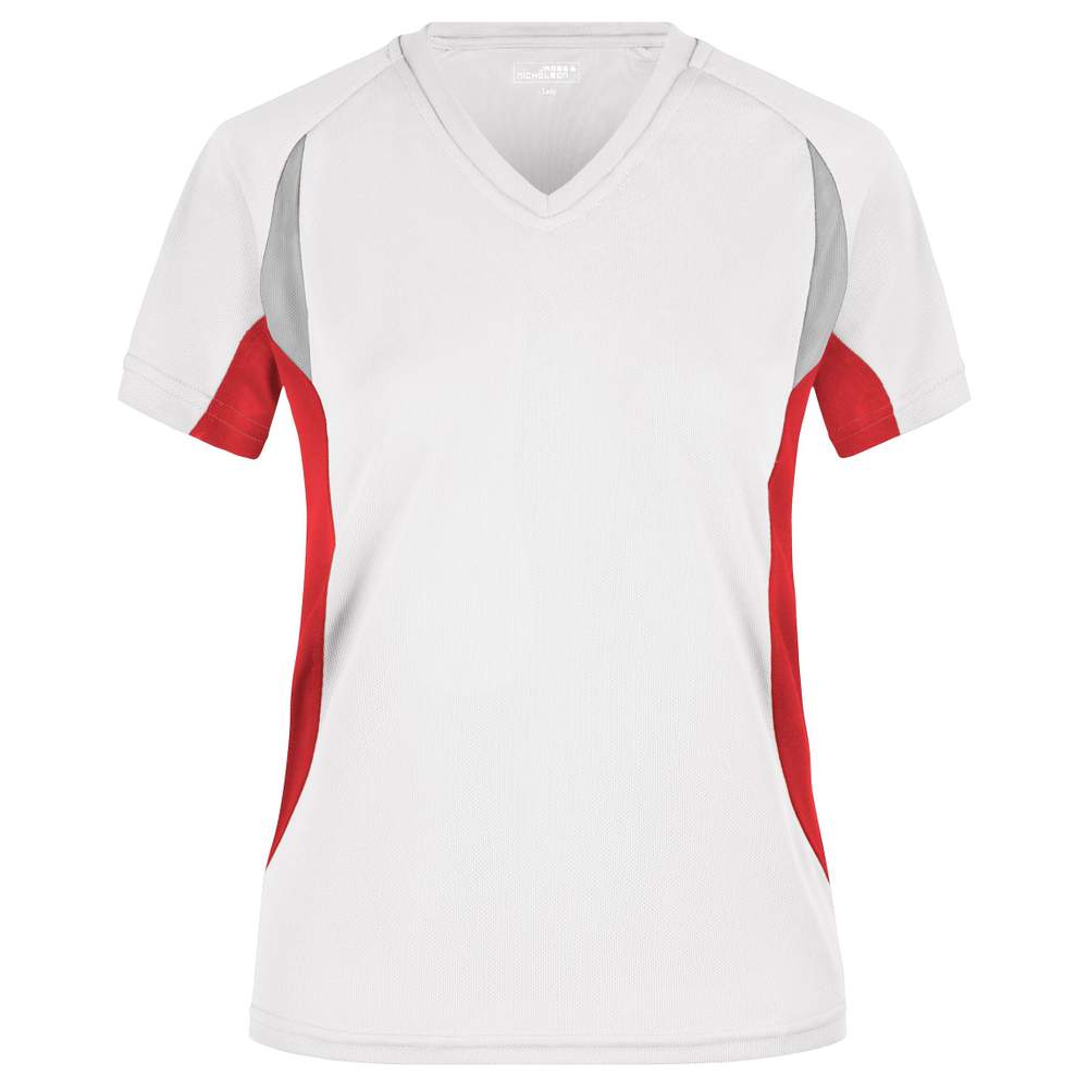 Ce tee shirt polyester offre un confort optimal grâce à ses propriétés absorbantes et à son séchage rapide. Sa conception légère le rend agréable à porter pendant l'exercice physique. La coupe ajustée et le col en V lui confèrent une allure moderne et sportive. Les inserts contrastés et les passepoils réfléchissants ajoutent une touche de style et améliorent la visibilité.