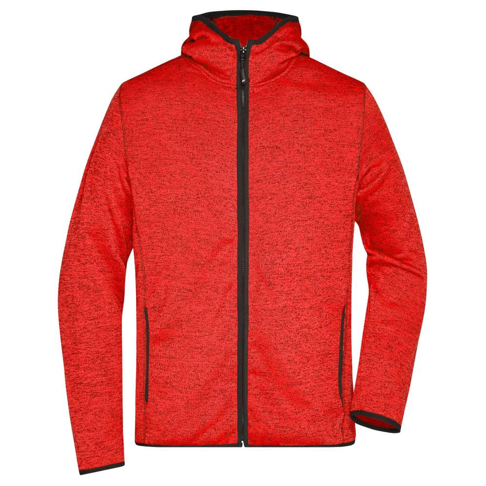 Men's knitted fleece hoody jn589 personnalisation - Red melange black